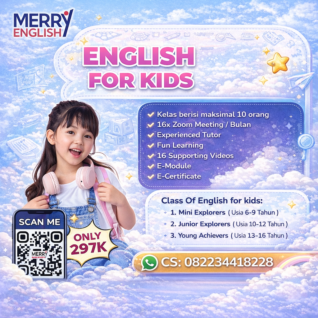 Bikin si kecil jatuh cinta sama bahasa Inggris lewat cara yang asik! Di kelas English for Kids, anak-anak bakal belajar lewat cerita, lagu, dan aktivitas interaktif yang nggak ngebosenin. Fokus kita adalah membangun rasa percaya diri mereka sejak dini dalam lingkungan belajar yang ceria dan suportif.